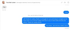 On 25 January, Epstein forwarded a text message from Skaugen to Rød-Larsen: