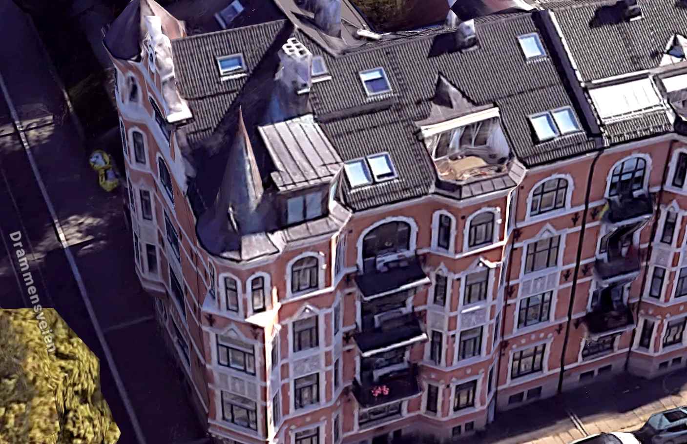 The apartment, which today probably has a market value of more than NOK 25 million, is located on the 4th floor of this building, the so-called “Sverreslottet” (Sverre’s Castle) in central Oslo, Norway. (Photo: Google)