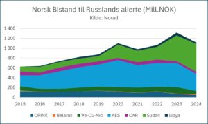 In 2015, the year after Russia’s annexation of Crimea, Norwegian aid to what are regarded as Russia’s closest military and strategic allies stood at NOK 626 million. Thereafter, it has increased sharply. In 2023 it surged to NOK 1.3 billion – and stood at NOK 1.1 billion in 2024. In total, Russia’s allies have taken NOK 9.3 billion from the Norwegian aid budget from 2015 to 2024.