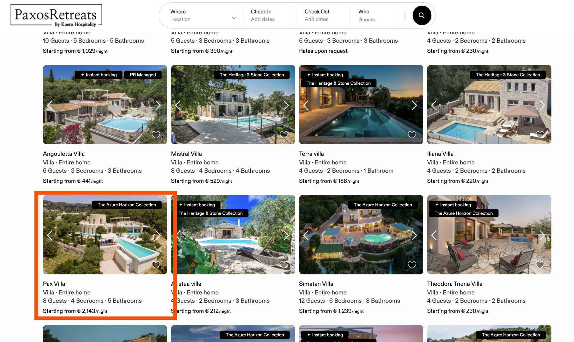 “Villa Pax”, as it is promoted for rental on the Greek property agent’s website. (Screenshot from Paxosretreats.com)
