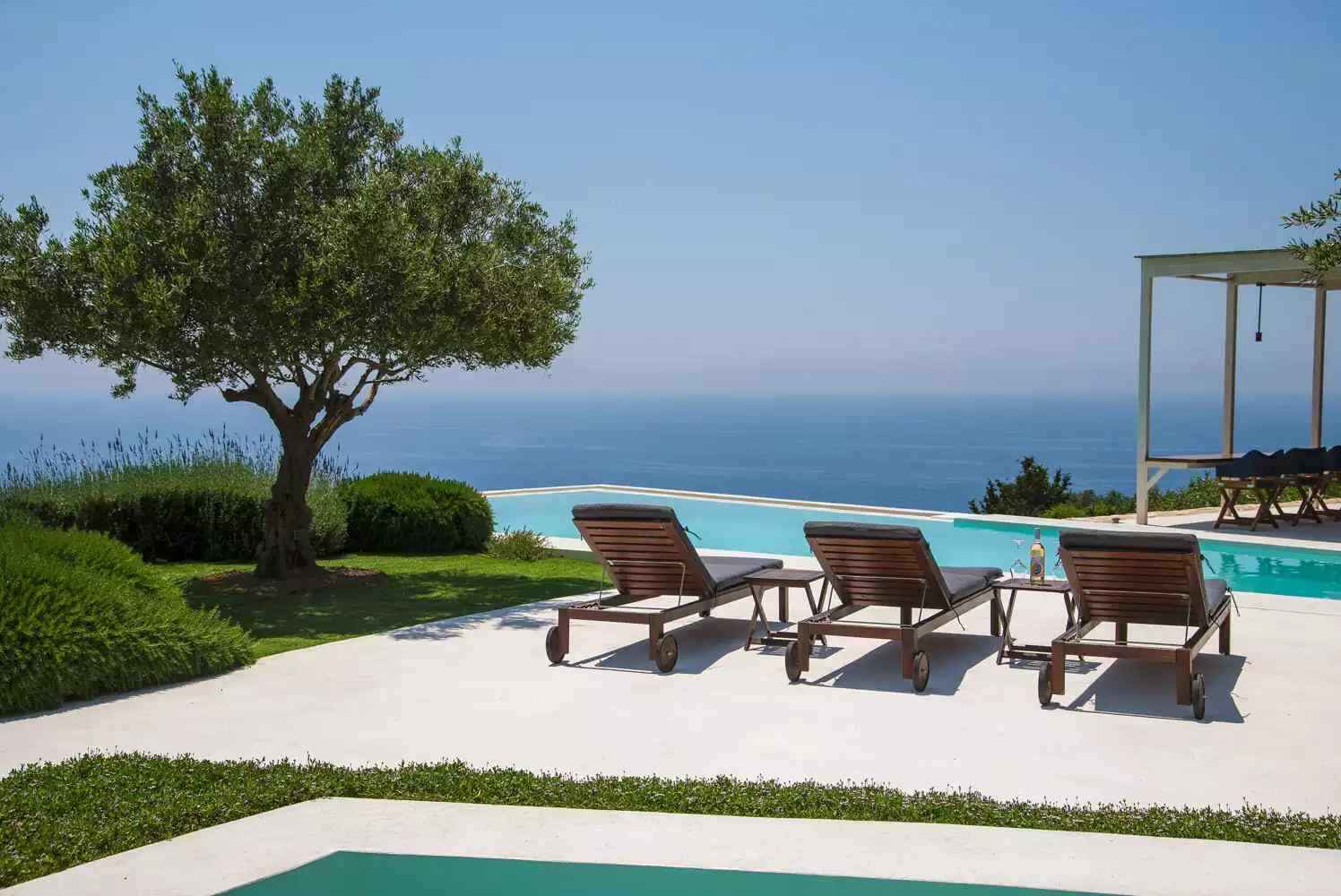 The purchase of the neighbouring plot in front of the property secured Rød-Larsen and Juul against unsightly construction in front of the two swimming pools. (Photo: Paxos Retreats/private)