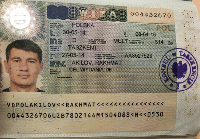 Rakhmat Akilov’s Polish passport. (Photo: Wikimedia Commons)