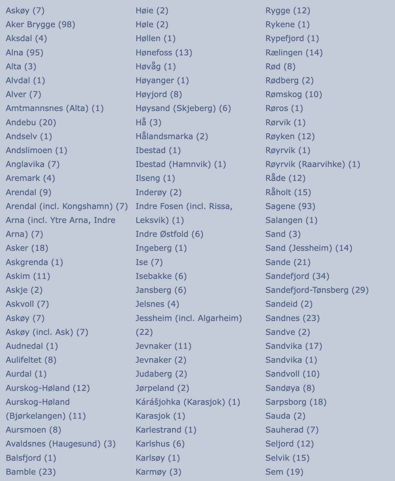 On the most central marketplaces for prostitution in Norway, where the police concentrate their efforts, advertisements for prostitutes appear openly in more than 700 cities and towns across Norway. The screenshot shows a small selection.
