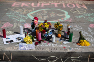 Very temporary memorial on a sidewalk in Pasadena, after Edward Van Halen died in October 2020. Photo: REUTERS/Mario Anzuoni/ NTB