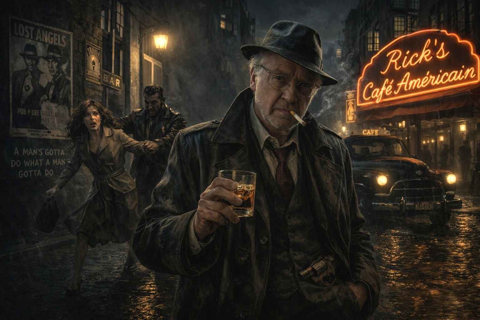 The mysterious stranger—where did he go? Illustration produced in collaboration with ChatGPT, which had seen “Casablanca”.